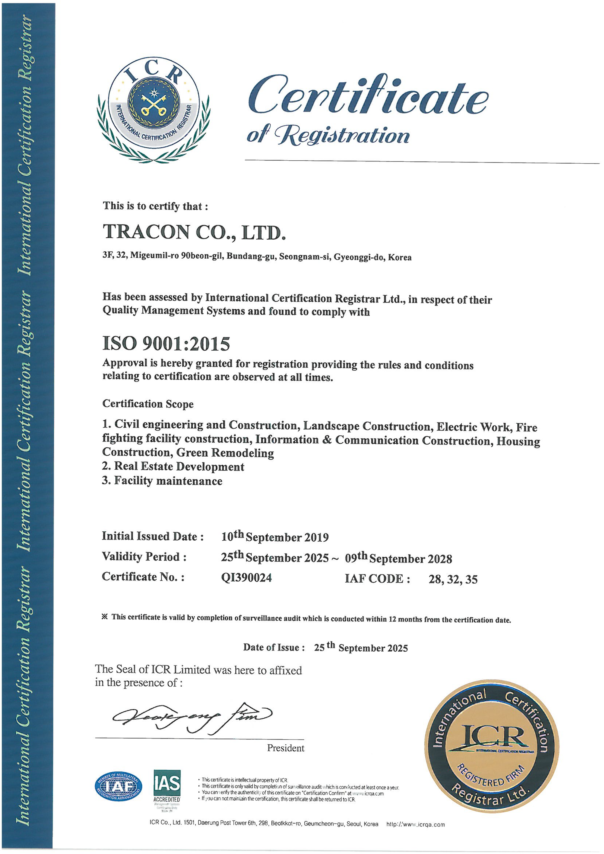 체계적인 품질경영시스템을 구축하고 인증받았습니다. (ISO9001)